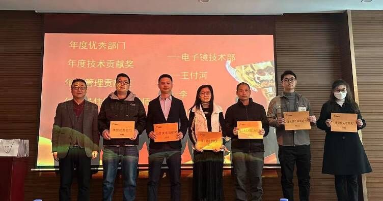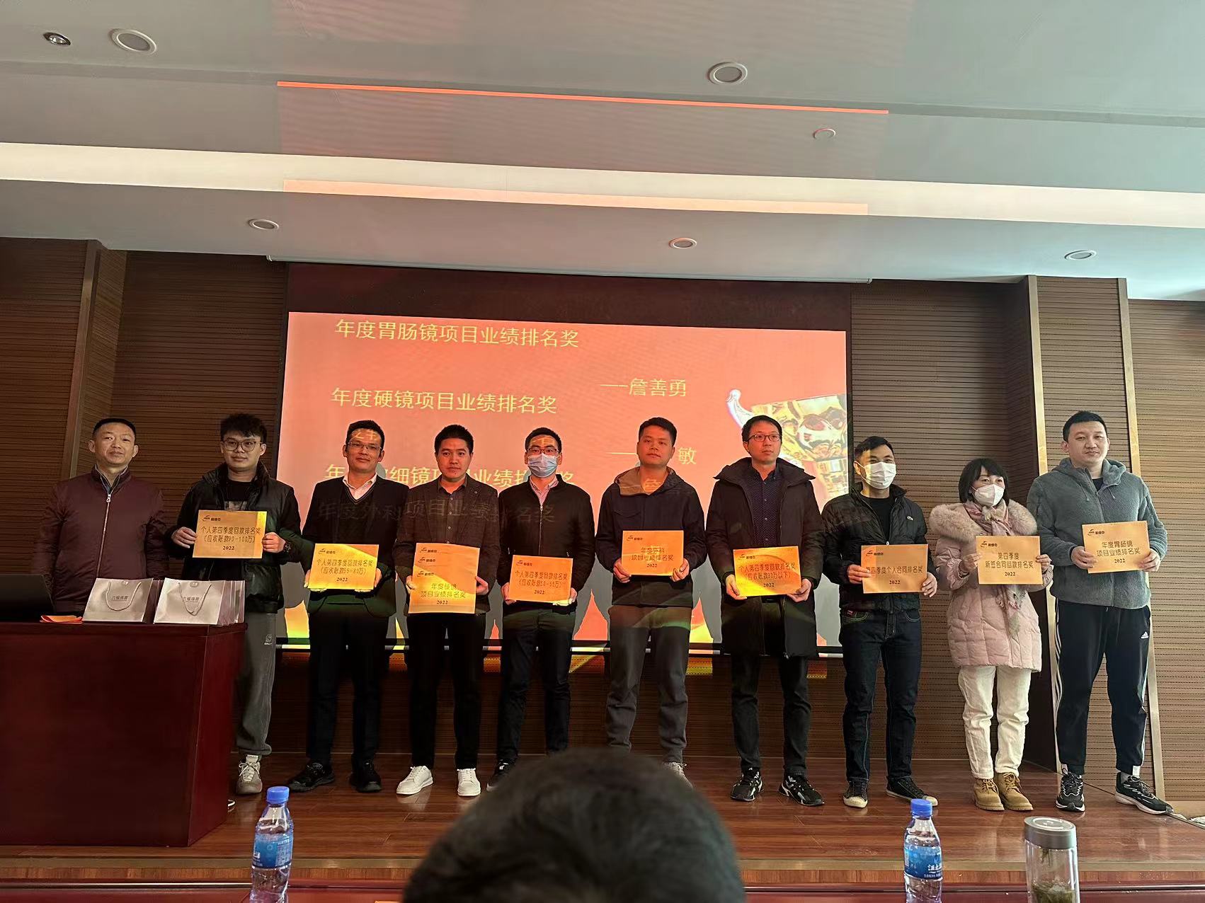 公司总经理和营销总监对2022年优秀部门、优秀员工以及对公司坚守不渝的十年员工进行颁奖。